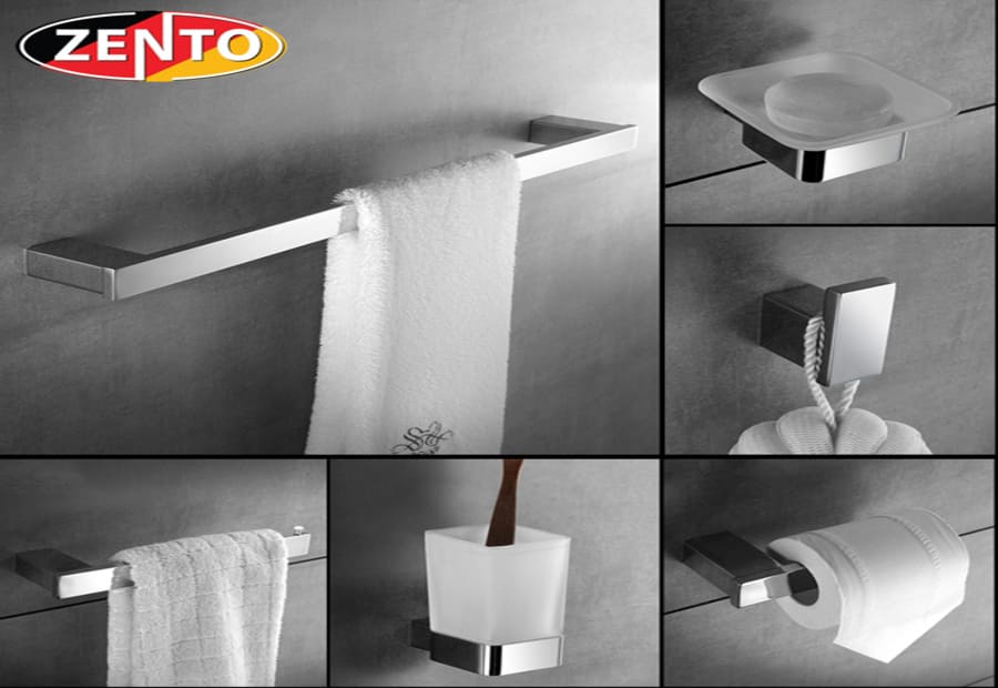 Combo phụ kiện Zento thường bao gồm các sản phẩm cơ bản như giá để khăn, móc treo quần áo, kệ để xà bông, và giá để đồ nhà tắm khác, giúp đáp ứng mọi nhu cầu sử dụng.